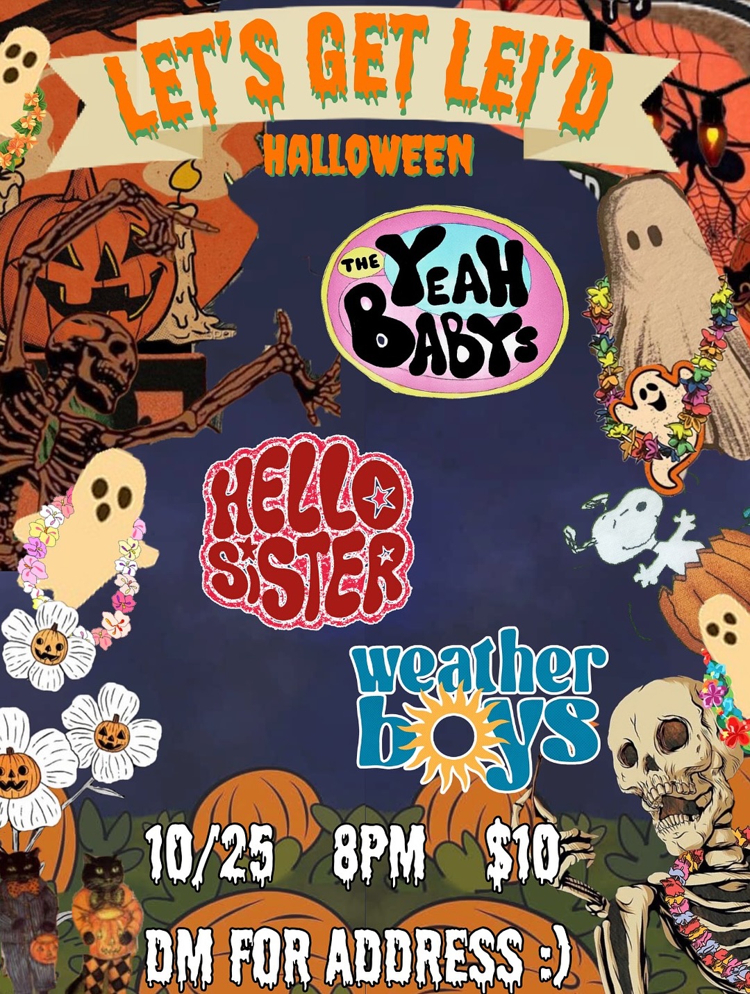 The Yeah Babys, The Weather Boys, Hello Sister are playing 8pm Saturday, October 25th. DM for address.