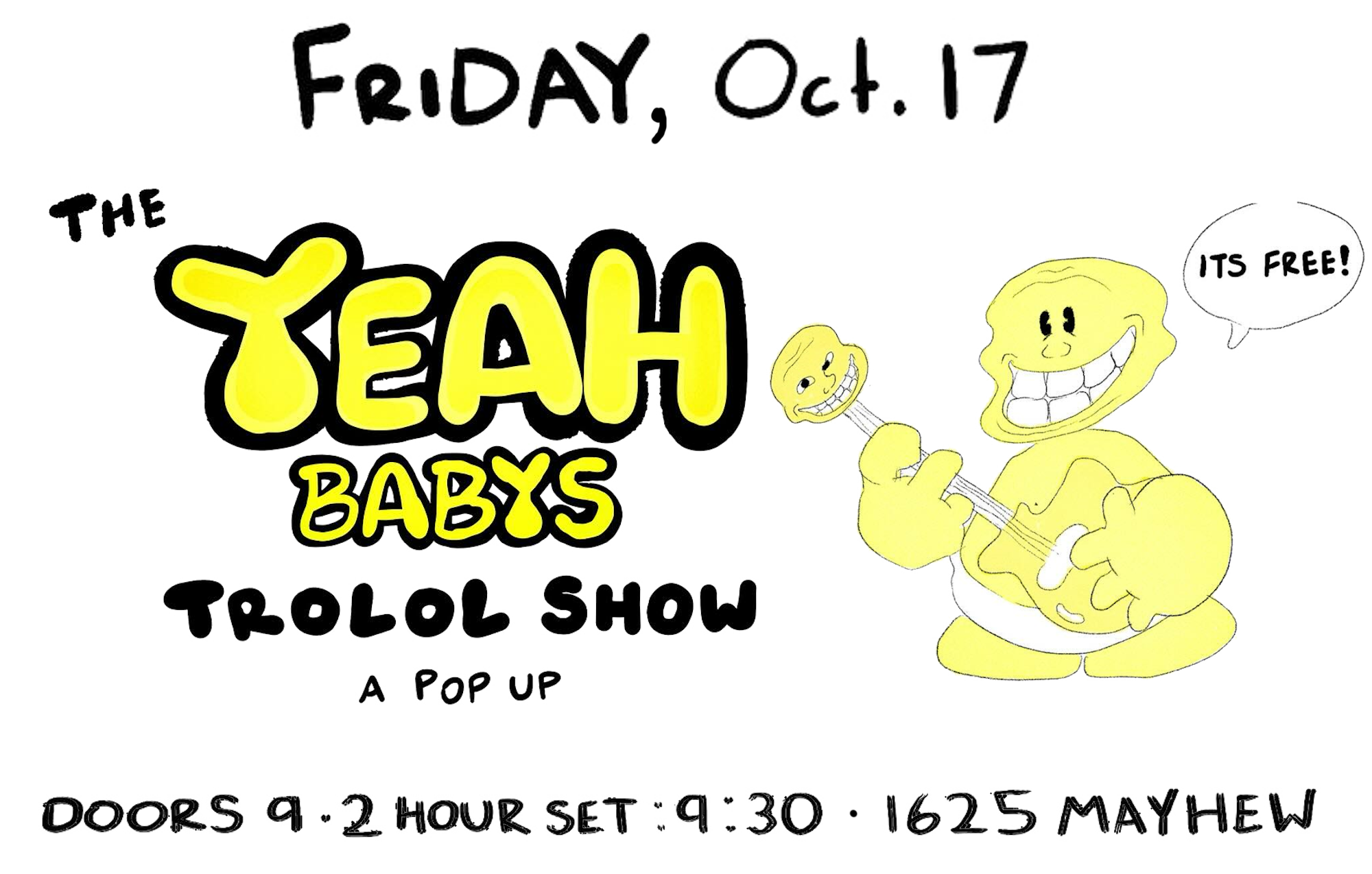 The Yeah Babys, The Weather Boys, Hello Sister are playing 8pm Saturday, October 25th. DM for address.